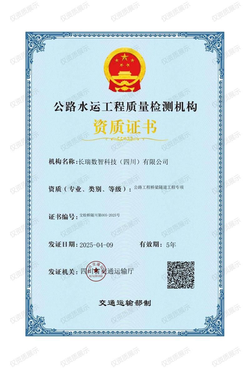 近日,長瑞數(shù)智科技(四川)有限公司順利通過公路水運工程質(zhì)量檢測機構(gòu)資質(zhì)復(fù)評審,成功續(xù)獲公路工程橋梁隧道工程專項資質(zhì)。這是自……